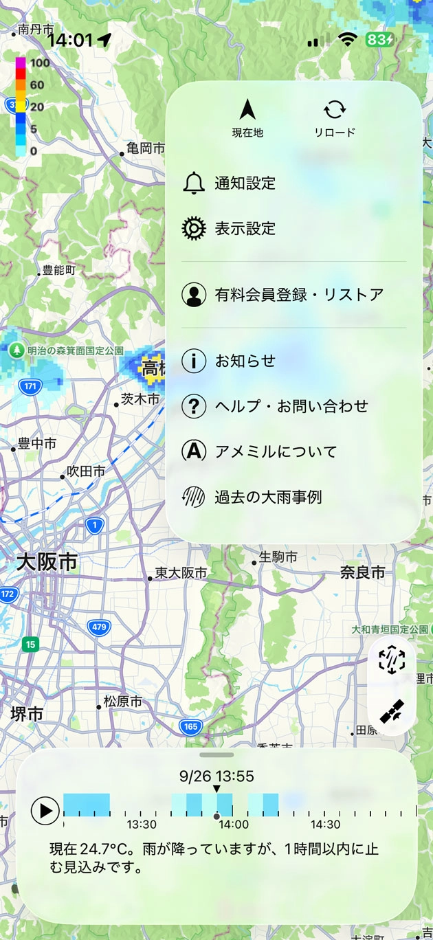 アメミル - ゲリラ豪雨を高精度に予測する雨雲レーダー(iOS版)